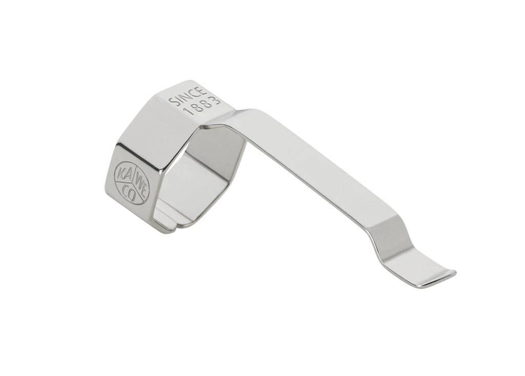 Linear and simple. The Kaweco Clip for the Perkeo series with subtle logo embossing is now available in black and silver. The Kaweco Clips are made from stainless steel and can easily be slid onto the octagonal cap of the Perkeo, ready for immediate use so that the pen can be securely attached to any notepad or shirt pocket.