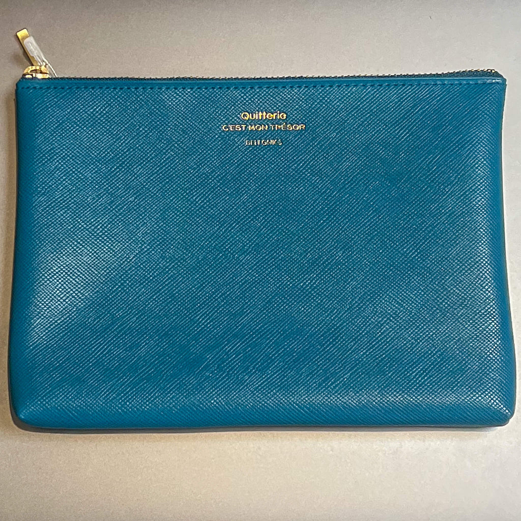This pencil case features a textured faux-leather finish, secured with a top zipper and detailed with an embossed logo. Embossed in gold foil is,"C'est mon trésor", which translates as my treasure.
