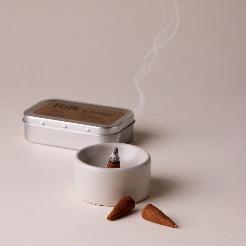 Woodlands and Ripe Fig Incense Cones in an aluminium tin. 20 cones. This collection is in ode to the folk who shaped this land. We salute them. We could learn a lot from our tribal ancestors. They wandered in the wild, laid down roots and patiently waited out blustery storms. So, here's to them and you, may you find a home wherever you wander.