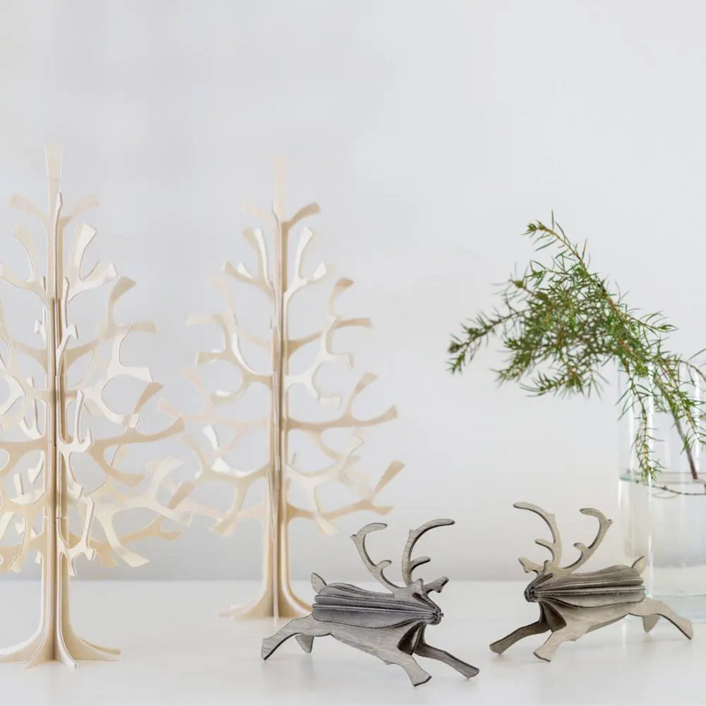 Crafted from sustainably sourced wood, this 12cm reindeer sculpture captures the essence of Nordic wilderness with understated elegance. The intuitive flat-pack design assembles effortlessly using provided visual guides, resulting in a striking three-dimensional piece that showcases traditional Scandinavian artistry. Perfect for shelving, mantelpieces, or seasonal table arrangements, this decorative figure brings authentic northern character to any interior. A refined accent that honours both natural craftsmanship and the untamed landscapes of Lapland.
