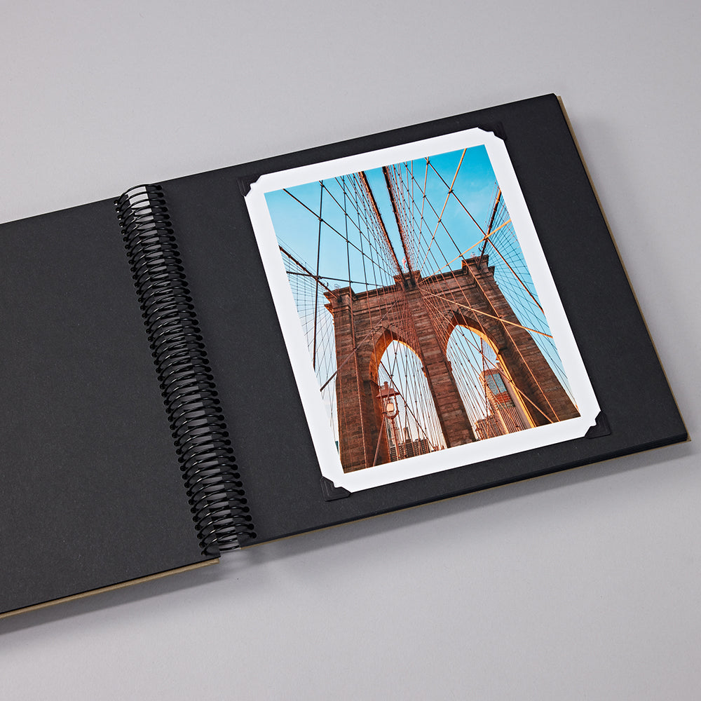 These Spiral Bound Photo Album have 40 sheets of black photo mounting board. It is covered with Efalin, a durable fine linen paper and has a traditional design. The pages lie completely flat when the album is opened.