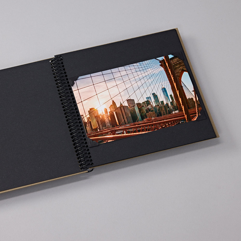 These Spiral Bound Photo Album have 20 sheets of black photo mounting board. It is covered with Efalin, a durable fine linen paper and has a traditional design. The pages lie completely flat when the album is opened.