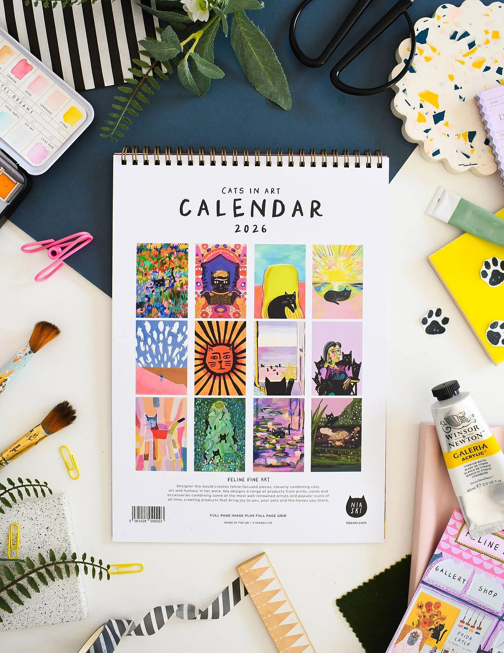 This delightful 2026 wall calendar pairs iconic artistry with playful feline creativity. Each month unveils a fresh illustration drawing inspiration from masters like Frida Kahlo, Henri Matisse, and Edvard Munch—all given a spirited cat twist. From January through December, you'll discover beautifully rendered scenes that blend fine art sensibility with whimsical humour. Perfect for those who appreciate both gallery-worthy aesthetics and the irresistible charm of cats, this calendar transforms everyday date-checking into a moment of artistic joy.