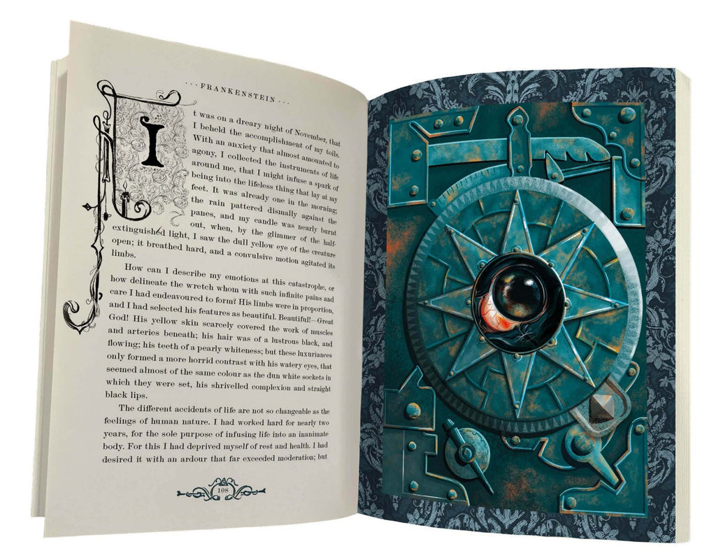 Experience Mary Shelley's seminal gothic masterpiece reimagined through the visionary design of MinaLima, the acclaimed studio responsible for the Harry Potter film aesthetic. This sumptuous edition transforms the 1818 horror classic into an immersive visual journey, featuring meticulously crafted full-colour illustrations and seven ingenious interactive elements that bring Victor Frankenstein's tragic narrative to vivid life. From concealed revelations of the Creature's visage to expandable maps and facsimile diary excerpts, each page invites deeper engagement with Shelley's profound exploration of scientific ambition, human rejection, and the possibility of redemption. A sophisticated collector's piece that bridges literary heritage with contemporary design excellence, this edition elevates the enduring tale of creation and consequence into an unforgettable tactile experience.