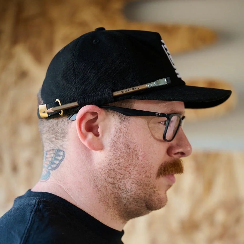 A refined canvas cap that merges practicality with craftsmanship. This adjustable five-panel design showcases the iconic Blackwing emblem on the front whilst incorporating a dedicated pencil loop—purpose-built to secure your Blackwing pencil within easy reach. Constructed from durable canvas and manufactured in the USA, it delivers comfort and functionality whether you're sketching, writing, or working on site. The unstructured silhouette ensures versatility across any setting.
