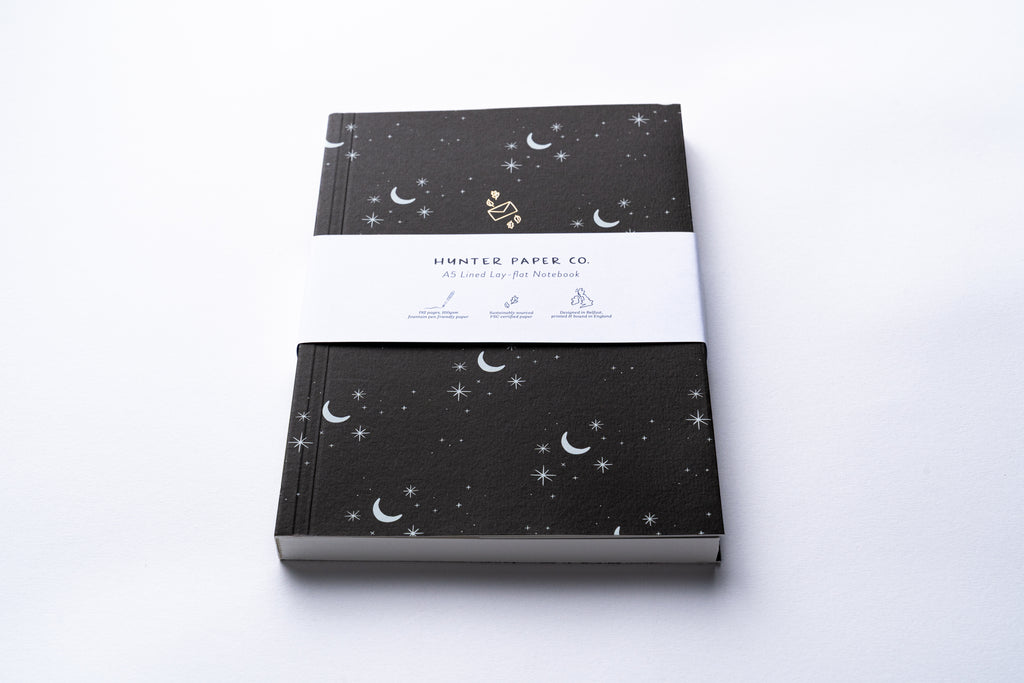 Designed by us in-house and bound by a family-run English bindery, this A5 notebook combines thoughtful design with practical functionality. The lay-flat binding opens completely flat, perfect for writing, drawing, or planning across double spreads without interruption.