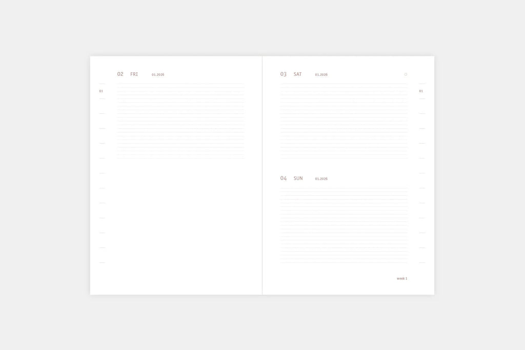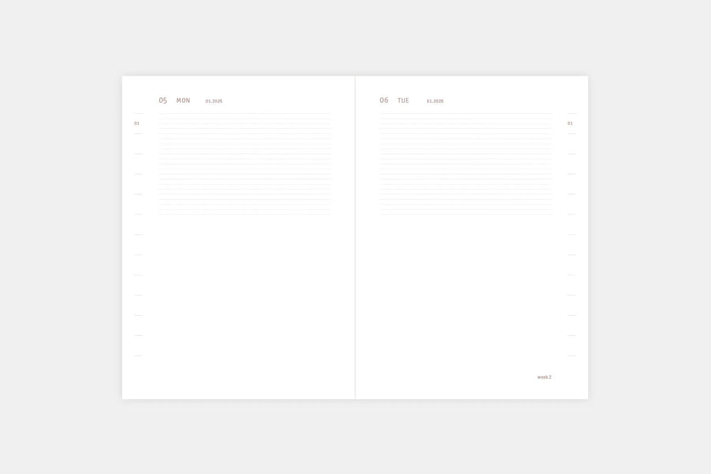The Papierniczeni 2026 Day to a Page Diary A6 is an ideal tool for managing daily responsibilities. Its compact size makes it convenient to carry in a bag or backpack, and its double-page layout, featuring a ruled and blank section, allows for efficient planning. The high-quality 90gsm smooth paper provides a delightful writing experience, especially when using fountain pens.