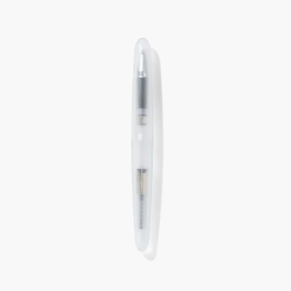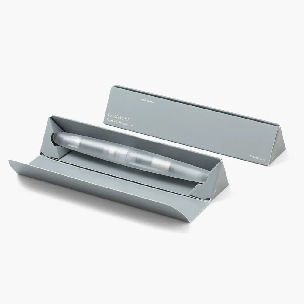 Crafted with a frosted glass aesthetic, this Kakimori rollerball pen showcases its internal mechanisms through a transparent design that doubles as visual intrigue. The curated colour selection and minimalist silhouette make it a striking desk companion. Engineered for discerning writers, it features an ergonomic grip zone for extended writing sessions, a precision screw cap mechanism, and a transparent ink reservoir indicator to monitor supply levels.