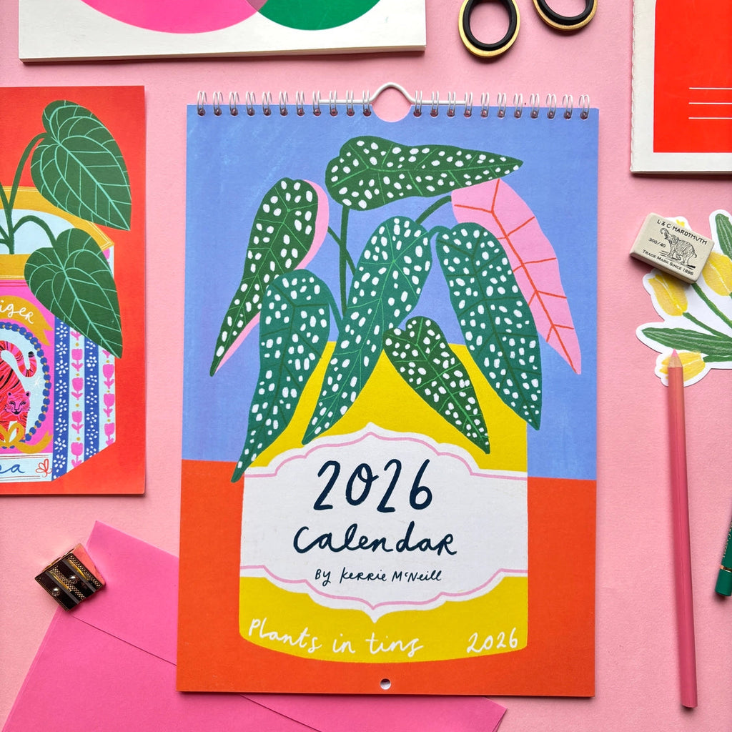 Bring joy, colour and charm to your year with this beautifully illustrated 2026 wall calendar, featuring 12 unique designs inspired by Kerrie McNeill’s love of houseplants, flowers, and vintage-style decorative tins. Each month showcases a bold, full-colour artwork bursting with playful patterns and botanical beauty — perfect for brightening up any room.