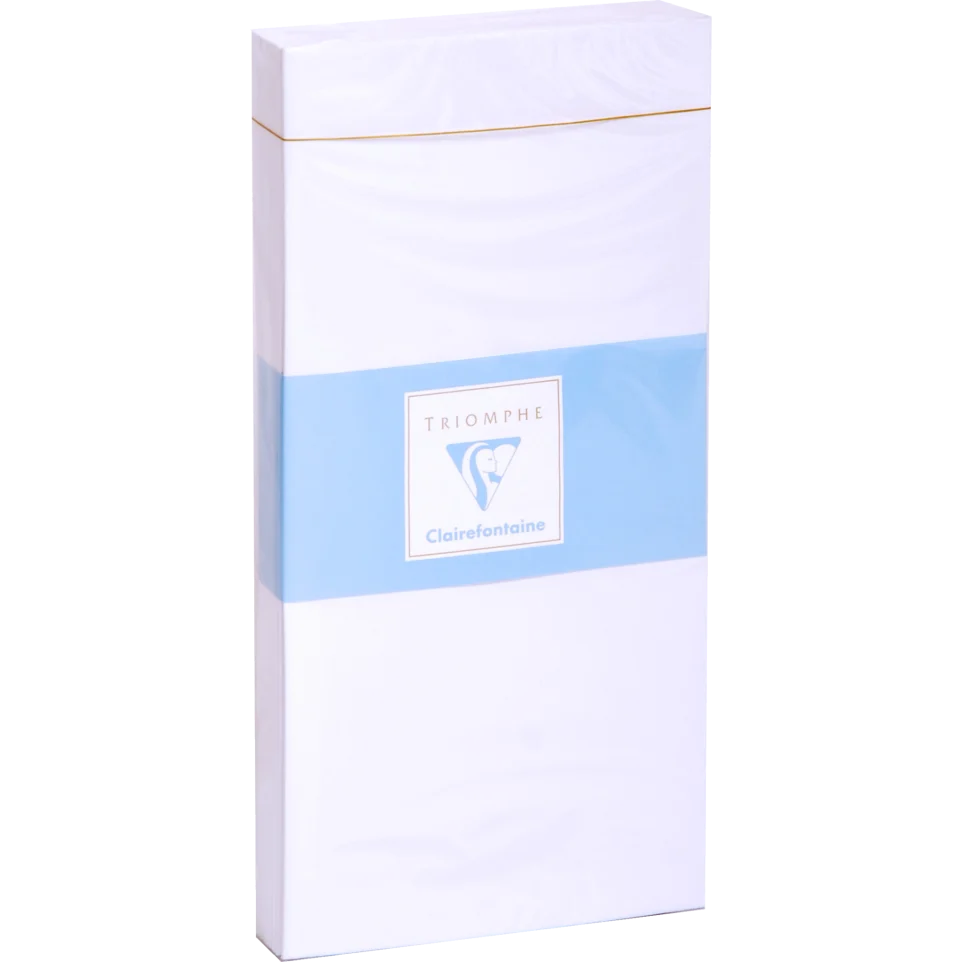 Enhance your correspondence with Clairefontaine Triomphe DL envelopes—25 pristine white pieces that reflect meticulous attention to detail. These envelopes are distinguished by their lined interior, finished with 50g Clairefontaine paper for a polished presentation. A reliable silicone adhesive strip ensures consistent, secure sealing. Made in France and PEFC-certified, they represent a commitment to both exceptional quality and environmental stewardship, making them an ideal selection for executive communications, formal invitations, and those who value premium stationery.