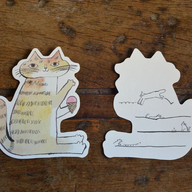 Meet Toraneko Bonbon, the delightful feline star of this charming notecard collaboration. Classiky and artist-chef Nakanishi Nachio have joined forces to create a whimsical cat cutout design that captures pure character. Soft watercolour washes in dreamy tones bring Nachio's signature playful style to life—expressive, endearing, and utterly irresistible. Perfect for jotting down quick notes or sending a smile to someone special, these notecards blend artistic charm with everyday practicality.