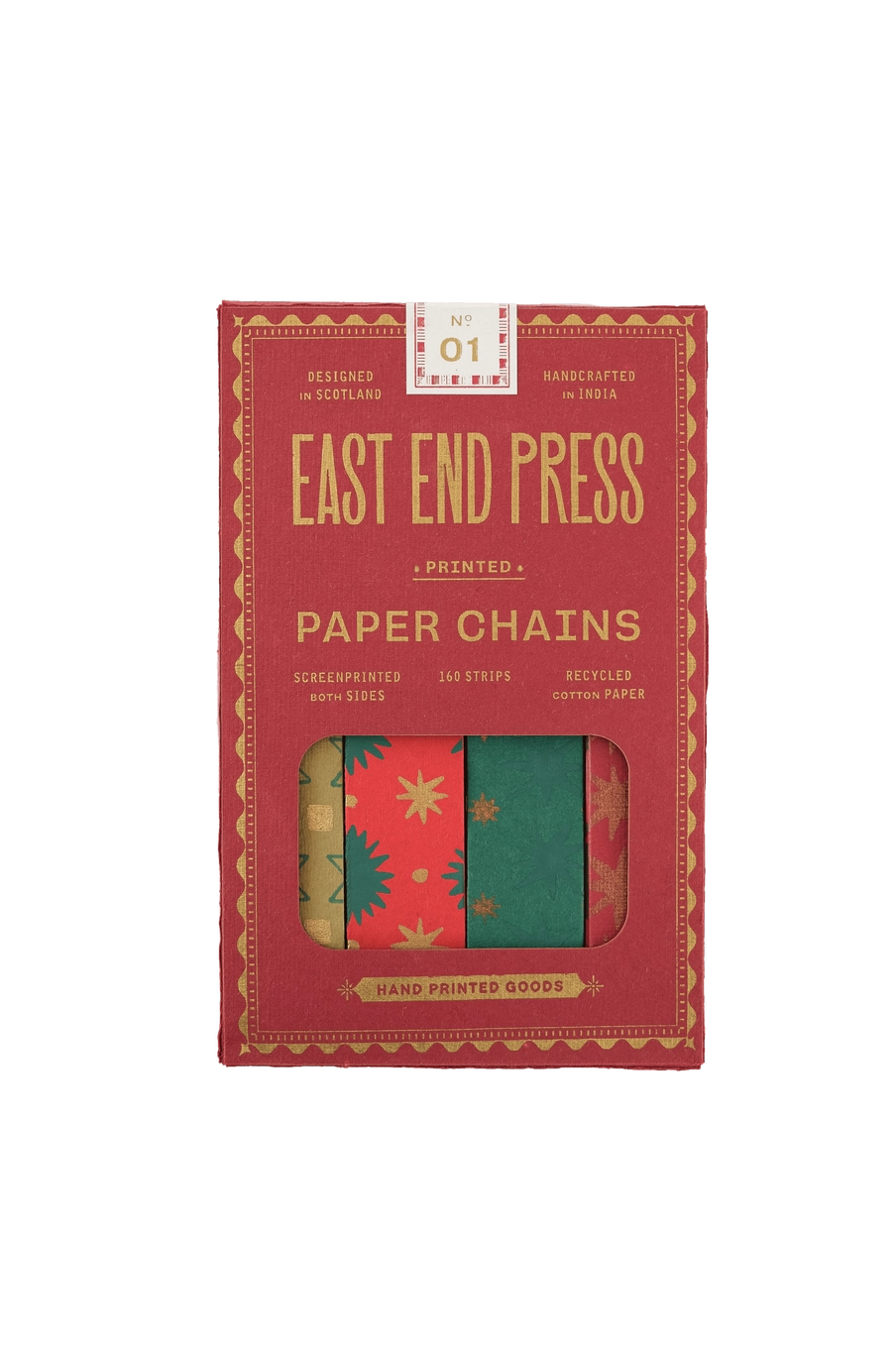 This paper chain kit includes 160 strips of recycled, multicoloured paper that assemble into ten metres of elegant chains. Simply connect each loop using glue or staples to create a timeless party decoration. Each strip is hand screen-printed on both sides by skilled artisans in Jaipur, ensuring vibrant and lasting color. Crafted sustainably from recycled materials, this kit combines traditional craftsmanship with eco-friendly design.