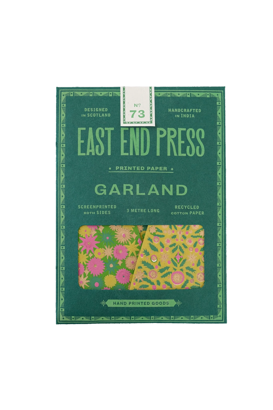 Based in Glasgow, East End Press create hand-printed garlands and decorations made from recycled paper or sustainably sourced wood. All their products are screen printed, which creates the bright, intense colours. Their products contain no plastic, and both products and packaging are made from recycled paper created from cotton waste from the textile industry.