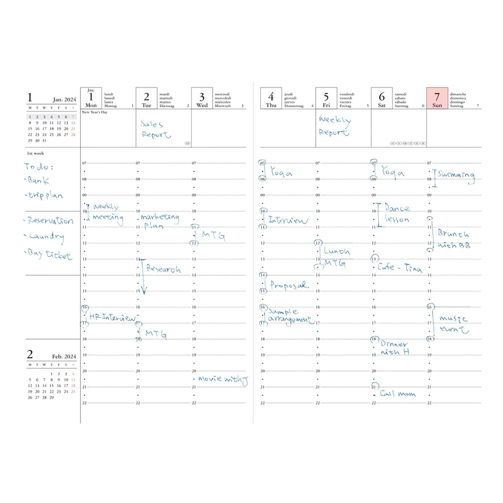 Mark's 2025/2026 diaries run from September 2025 to December 2026 and feature a vertical weekly layout, with a 16-hour schedule from 7 am - 10 pm,  perfect for planning your days in 30 min blocks.