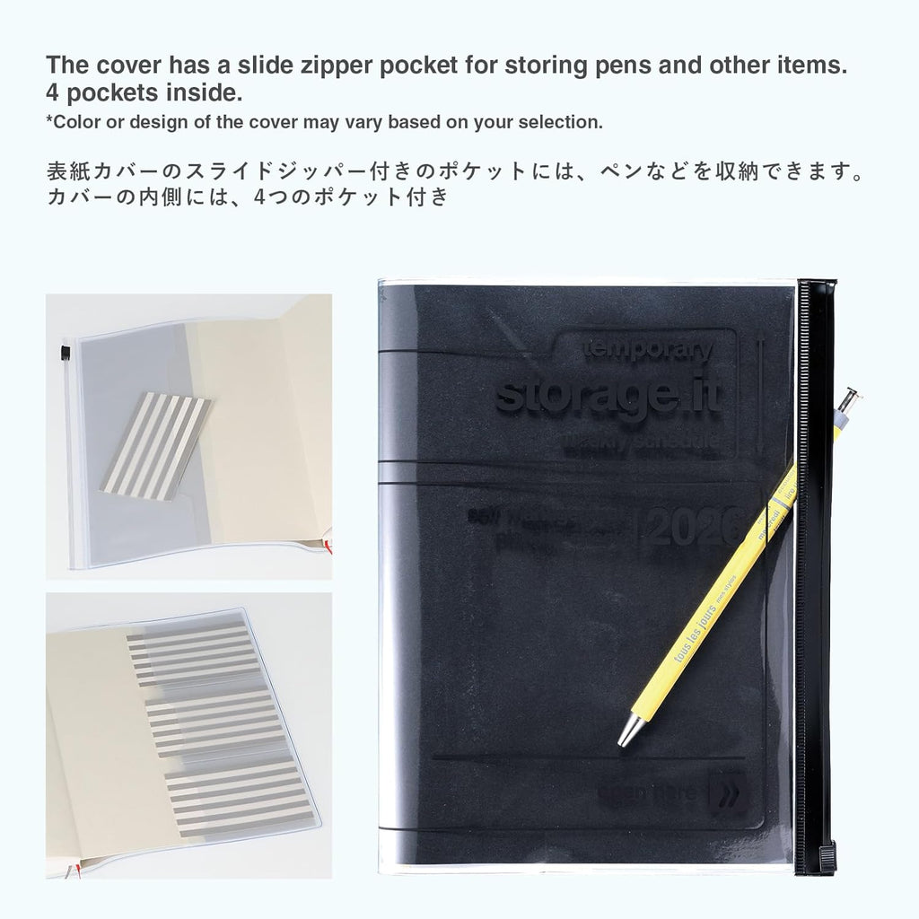 It comes with Mark's innovative zip cover which allows you to store pens, pencils and loose paper, effectively giving you a diary and pencil case all in one. The cover can be re-used the following year as Mark's sell the diary inserts separately.