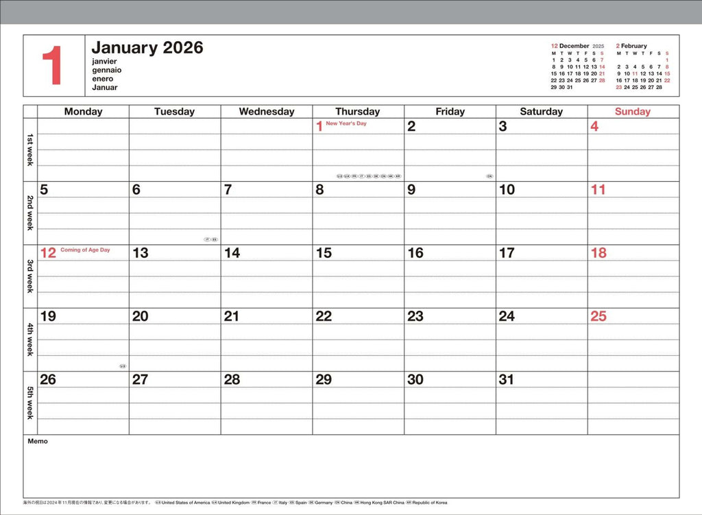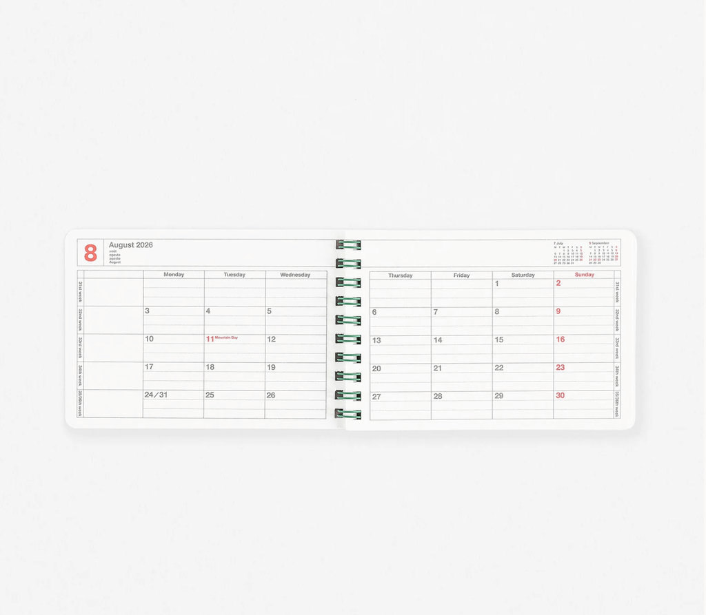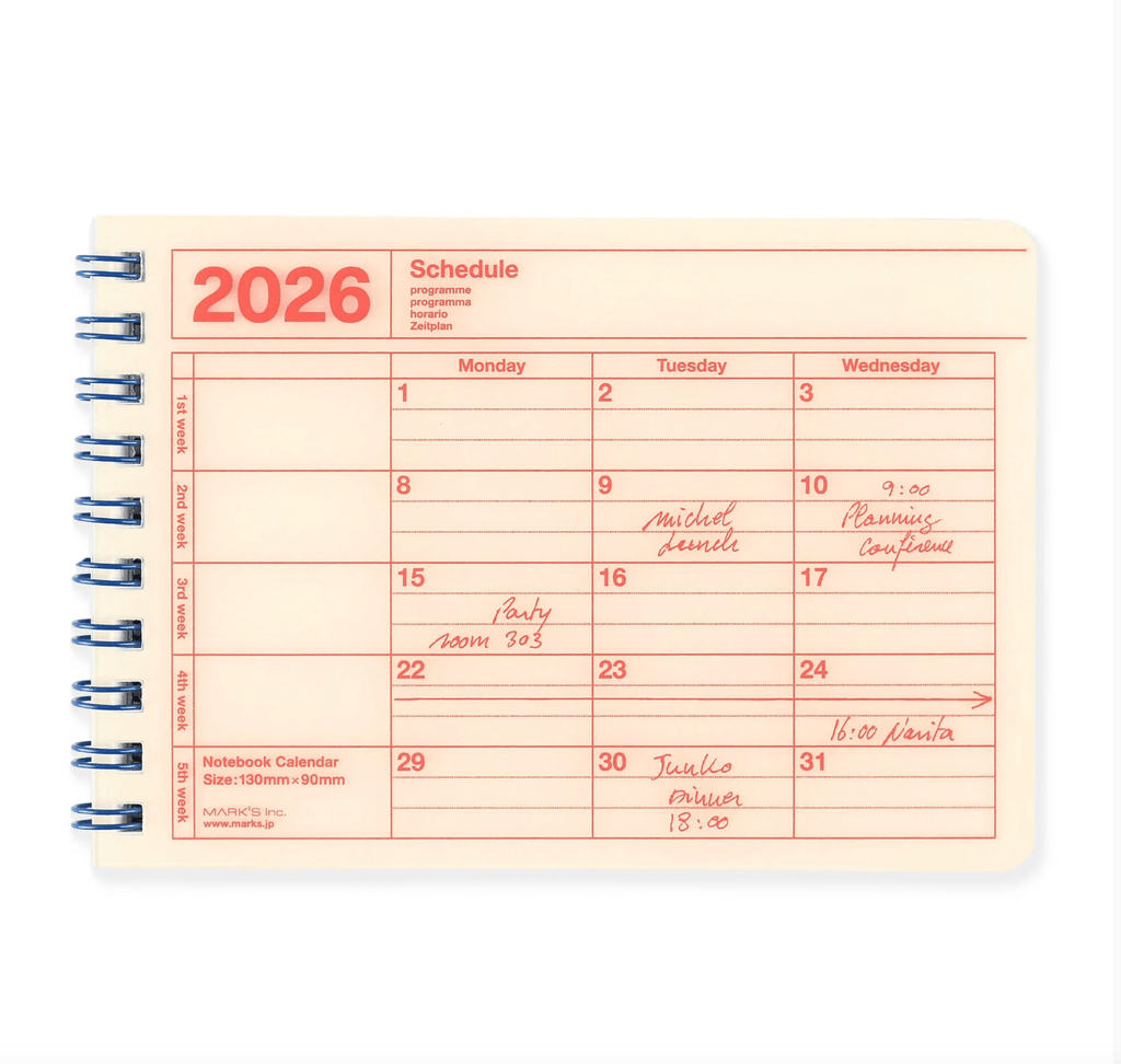 This pocket-sized 12-month notebook calendar combines functionality with portability in an expertly designed format. The monthly spreads provide clear visibility of your schedule, while the rigid cover ensures durability whether kept at your desk or carried daily. Wire binding allows the calendar to lay flat for easy writing, and the included yearly planner gives you both macro and micro planning perspectives. Lined note pages extend its utility beyond scheduling, making it an indispensable companion for professionals who value organisation without bulk.