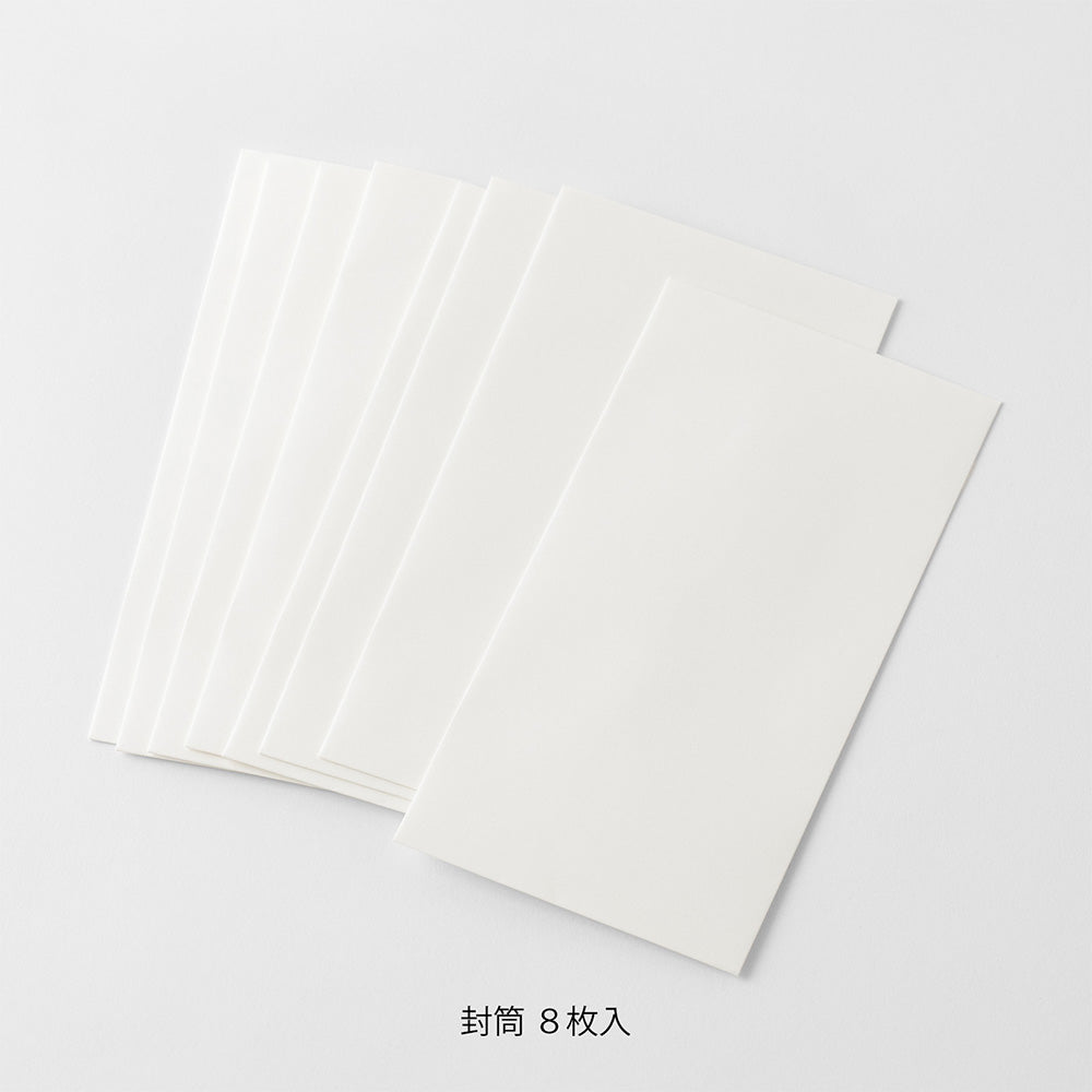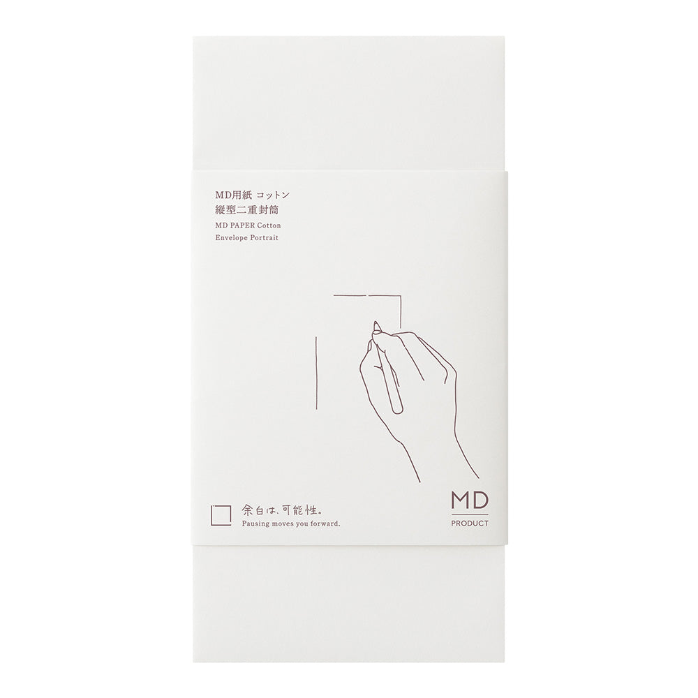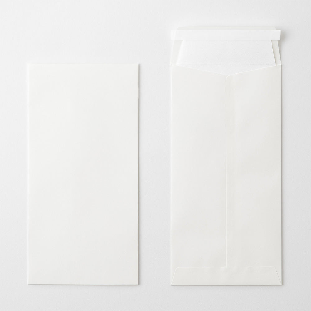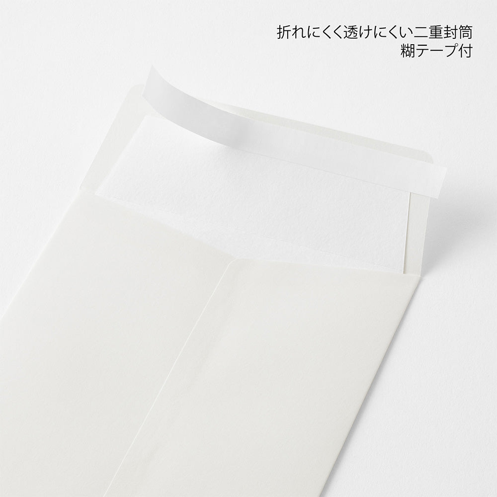 The portrait envelopes for the vertical ruled MD PAPER Cotton Letter Pad. The MD PAPER Cotton includes 20% soft-textured cotton pulp maintaining the feature of MD PAPER, which prevents smearing and bleed-through and enables comfortable writing. It has a gentle texture and elegant writing feel that contains ink softly. Made with an MD PAPER Cotton exterior and an inner lining to provide the same writing comfort while still keeping your writing private.