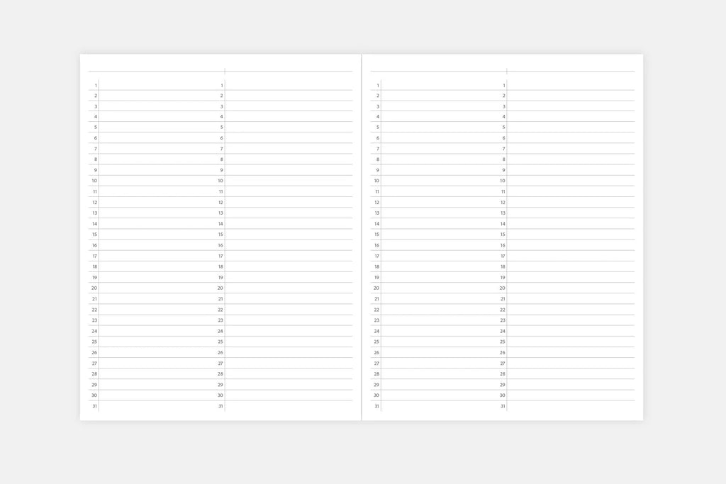 The Monolit Planner stands out with its refined design, showcasing a delicately embossed monolithic pattern ideal for fans of minimalist architecture. Its undated layout allows flexible start times for your planning. The sturdy graphite cardboard cover, finished with a soft natural texture, features flaps to keep your notes organised. Measuring a practical A5 size, it blends a 54-week planner with 80 dotted pages for notes. The special binding enables the planner to lie completely flat, while the 100 gsm warm white paper is fountain pen-friendly. It includes 200 pages, is FSC-certified, and handmade in Warsaw.