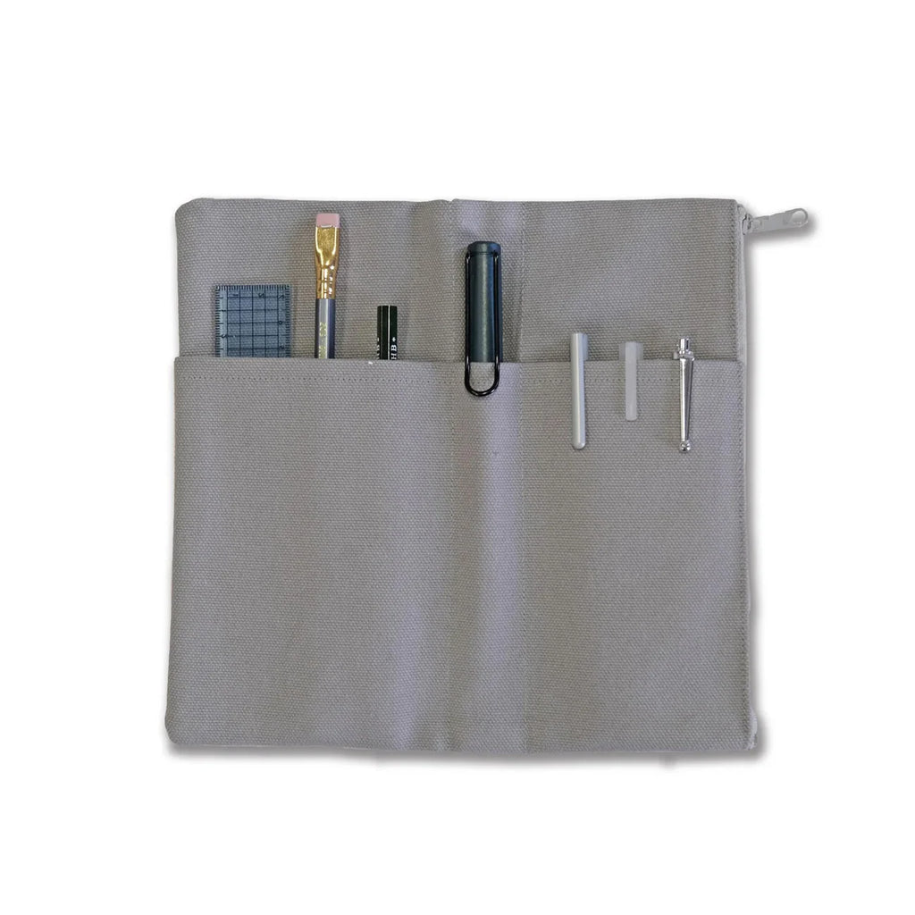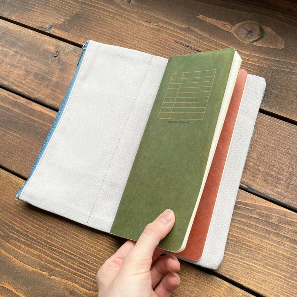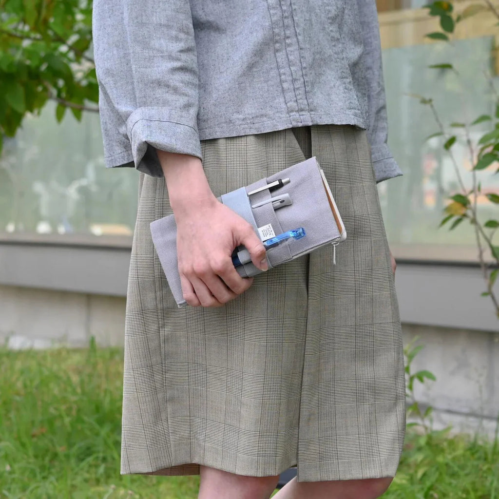 Handcrafted canvas cover designed to protect and organise your Yamamoto notebooks, , allowing you to carry up to 5 at once. Made from durable 16oz cotton that develops a unique patina with age, this cover features three surface pockets, a zippered interior compartment, and an adjustable book band that securely holds up to five notebooks. Produced in small batches in Japan using traditional sewing techniques, it combines practical functionality with understated elegance for everyday carry.