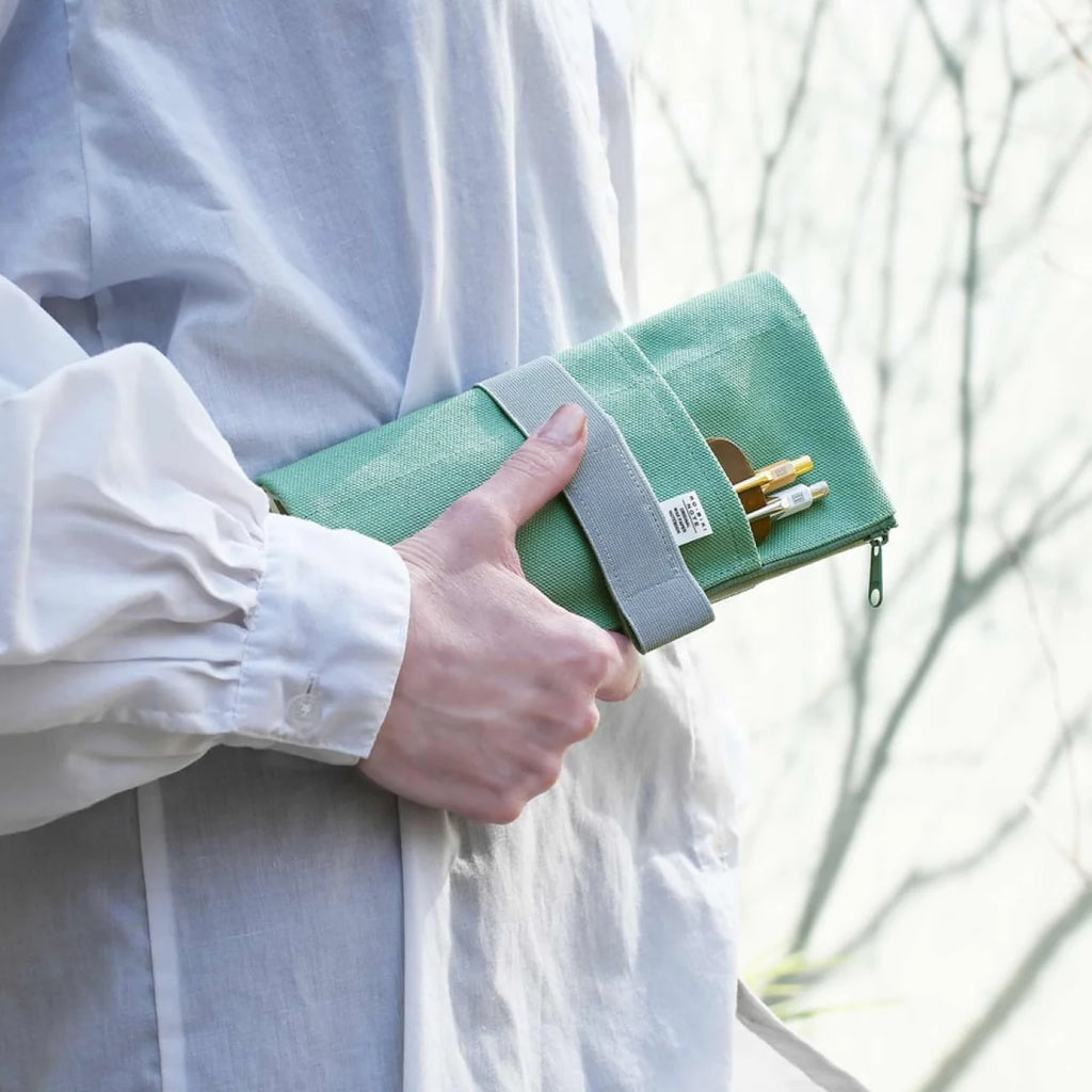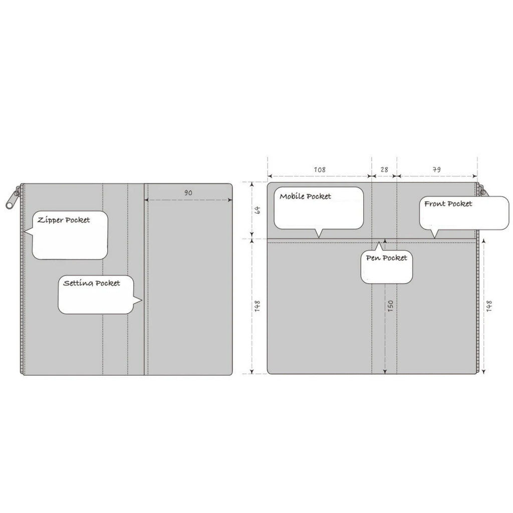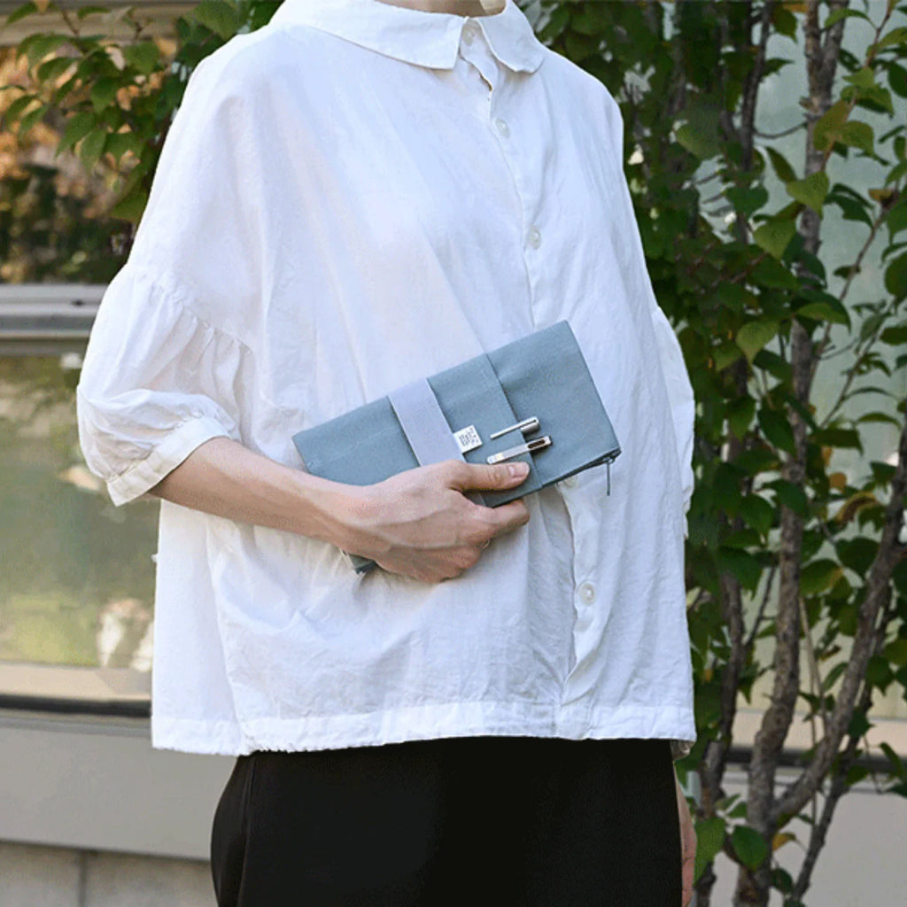 Handcrafted canvas cover designed to protect and organise your Yamamoto notebooks, , allowing you to carry up to 5 at once. Made from durable 16oz cotton that develops a unique patina with age, this cover features three surface pockets, a zippered interior compartment, and an adjustable book band that securely holds up to five notebooks. Produced in small batches in Japan using traditional sewing techniques, it combines practical functionality with understated elegance for everyday carry.